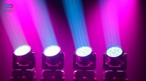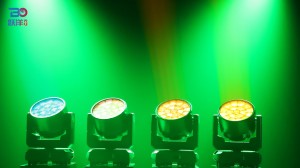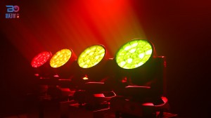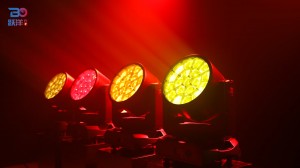 Features: Full range dimming, 65536 dimming levels; 4 dimming curves to choose. Fast strobe 1~25Hz; LED are divided into 3 circles for control;Integrating WASH and beam effect; Preset multiple color macro function; Preset multiple effect macro function(WASH、Ring control、Strobe)