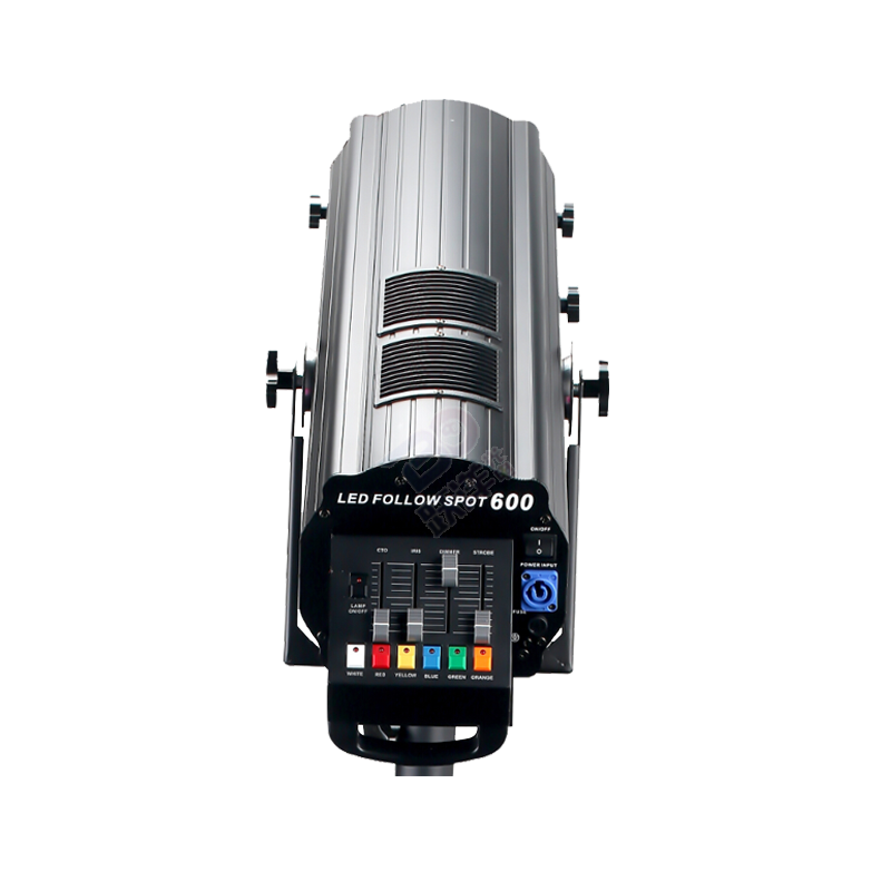 600W LED Follow Spot Light with high-power LED chip. Suitable color temperature, high color rendering. Light body with all-aluminum materials, volume small size with light-weight, high brightness. High-power fan cooling system to ensure the safety LED Chip, can stability of continuous work. The lights can Close-up of the characters and scenery in stage lighting, theater, film and stadiums and other places