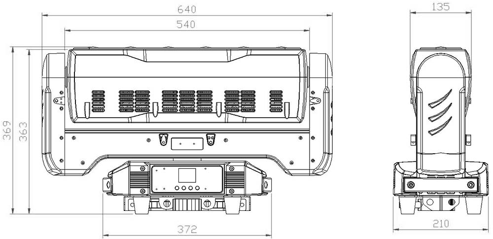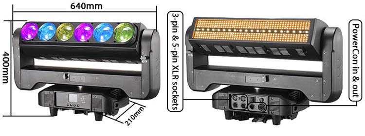 Features: Full light range dimming, 65536-level dimming accuracy; fast strobe 1- 25Hz; single-point control of lamp beads; three-in-one effects of dyeing, beam, and bee eye; preset multiple color macro functions; preset multiple effect macro functions