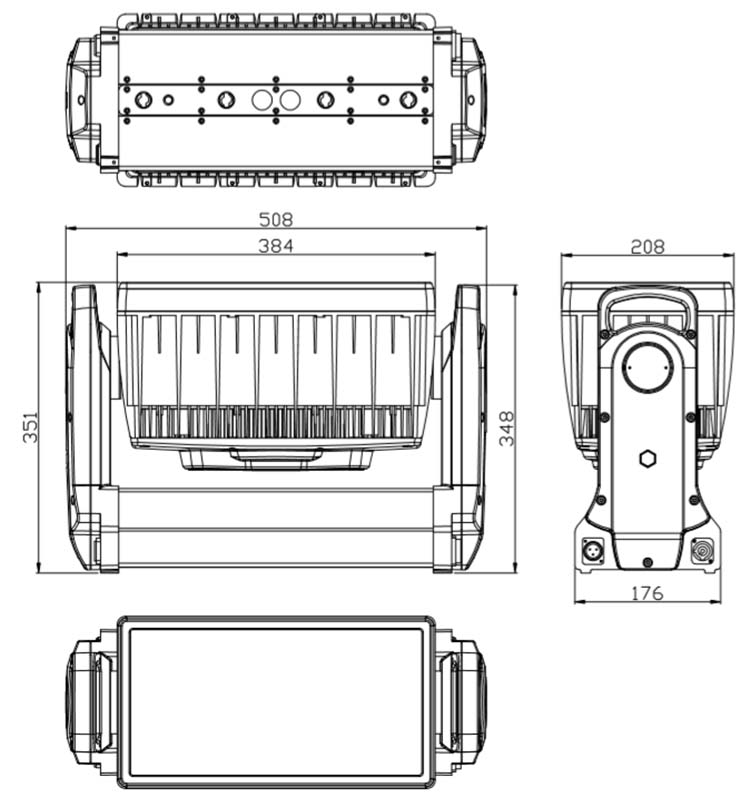 • Effect configuration: full range dimming, 65536 levels of dimming accuracy; fast strobe 1~25Hz; preset multiple color macro functions; preset multiple effect macro functions;