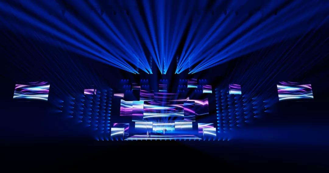 At the same time, the lighting structure is enriched with 6 sets of T-shaped CNC lamps and 1 set of circular CNC lamps to enrich the performance space. 6 groups of independent NUMERICAL control can be arranged to transform different modeling combination, circular numerical control lamp array arranged on a "full moon" echoes the theme of the Mid-Autumn Festival concert "Bay Area rising moon".