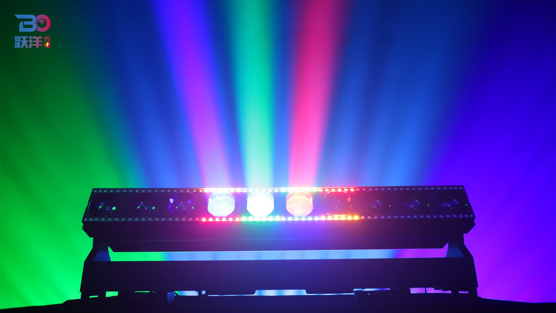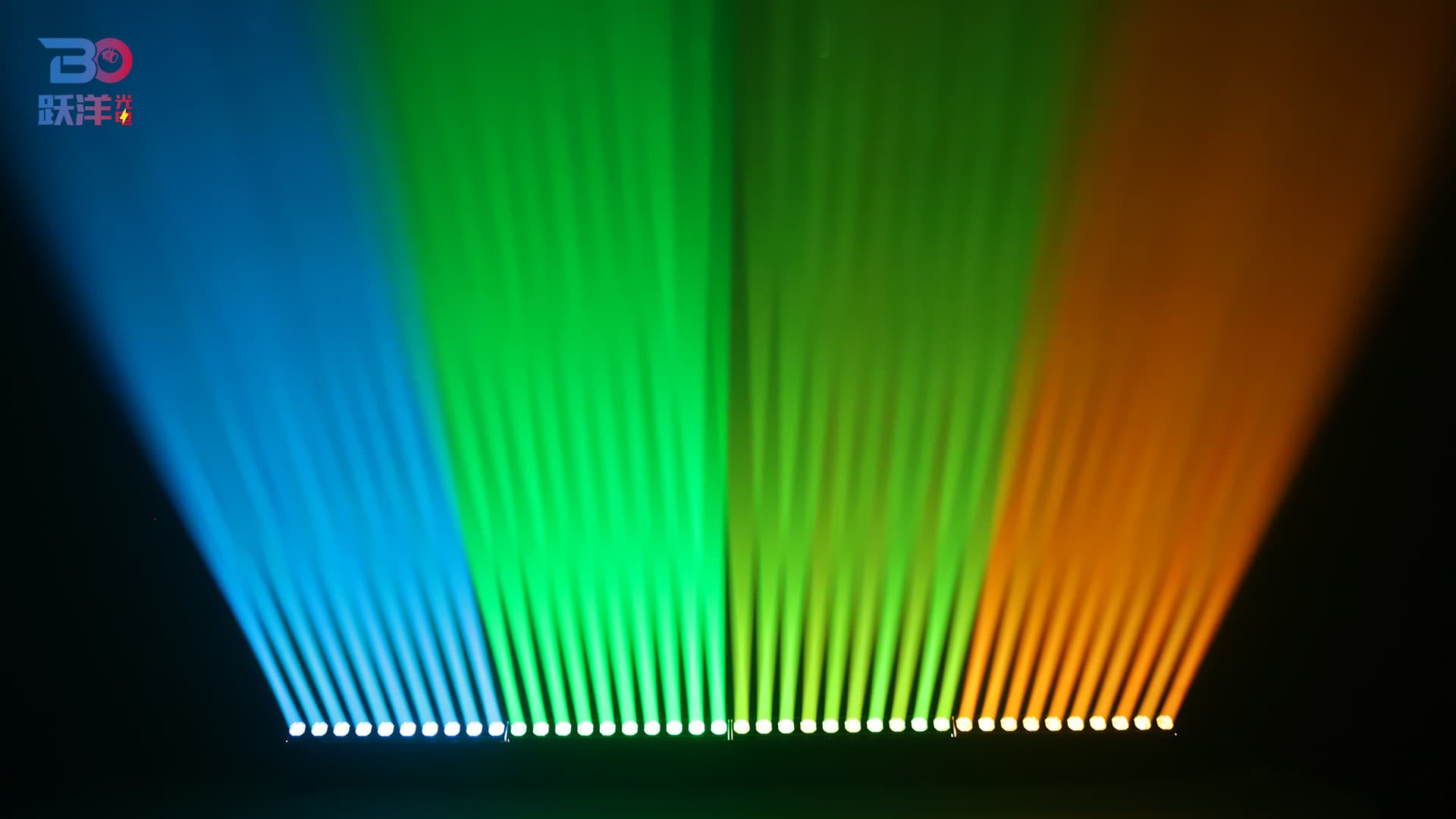 Features: Full light range dimming, 65536-level dimming accuracy; fast strobe 1-25Hz; single-point control of the middle lamp bead, 20-segment control on both sides; three-in-one effect of dyeing, beam, and strobe; preset multiple color macro functions; preset multiple effect macro functions