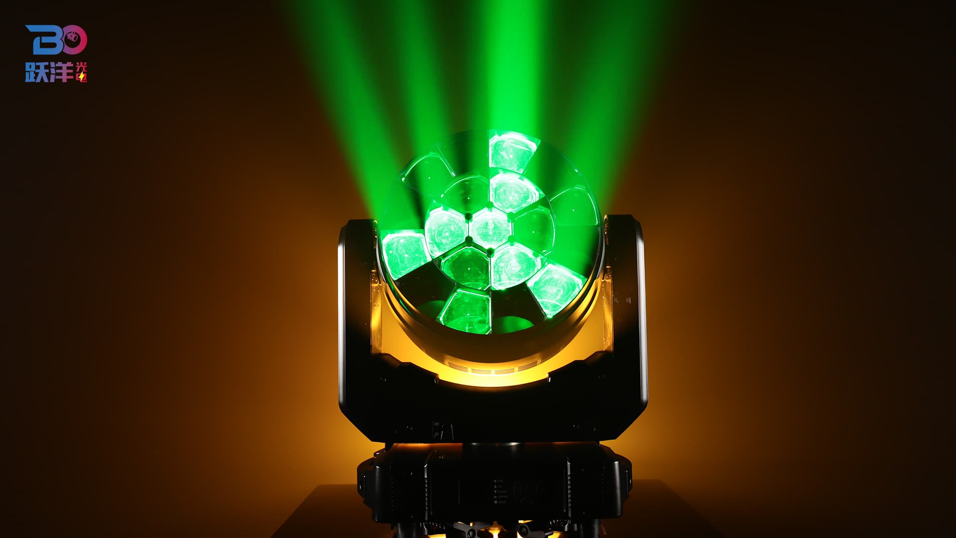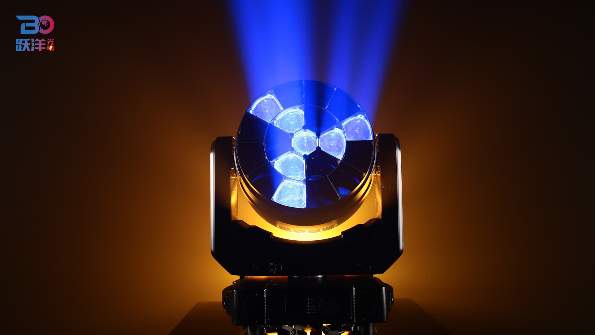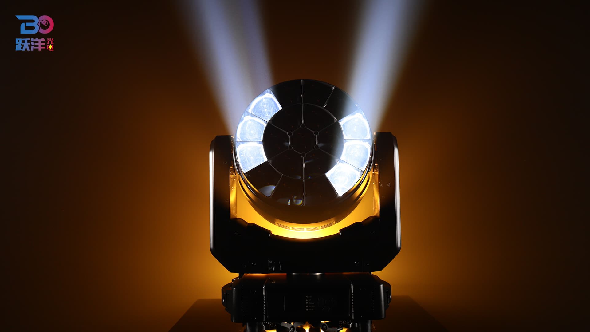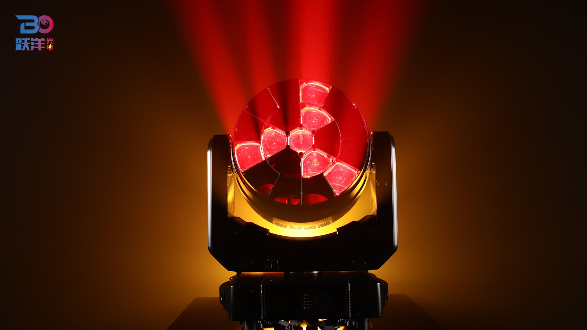 Features: Full light range dimming, 65536-level dimming accuracy. fast strobe 1-25Hz. Single control of the LED. three-in-one effects of wash, beam, and bee eye. preset multiple color macro and effect functions