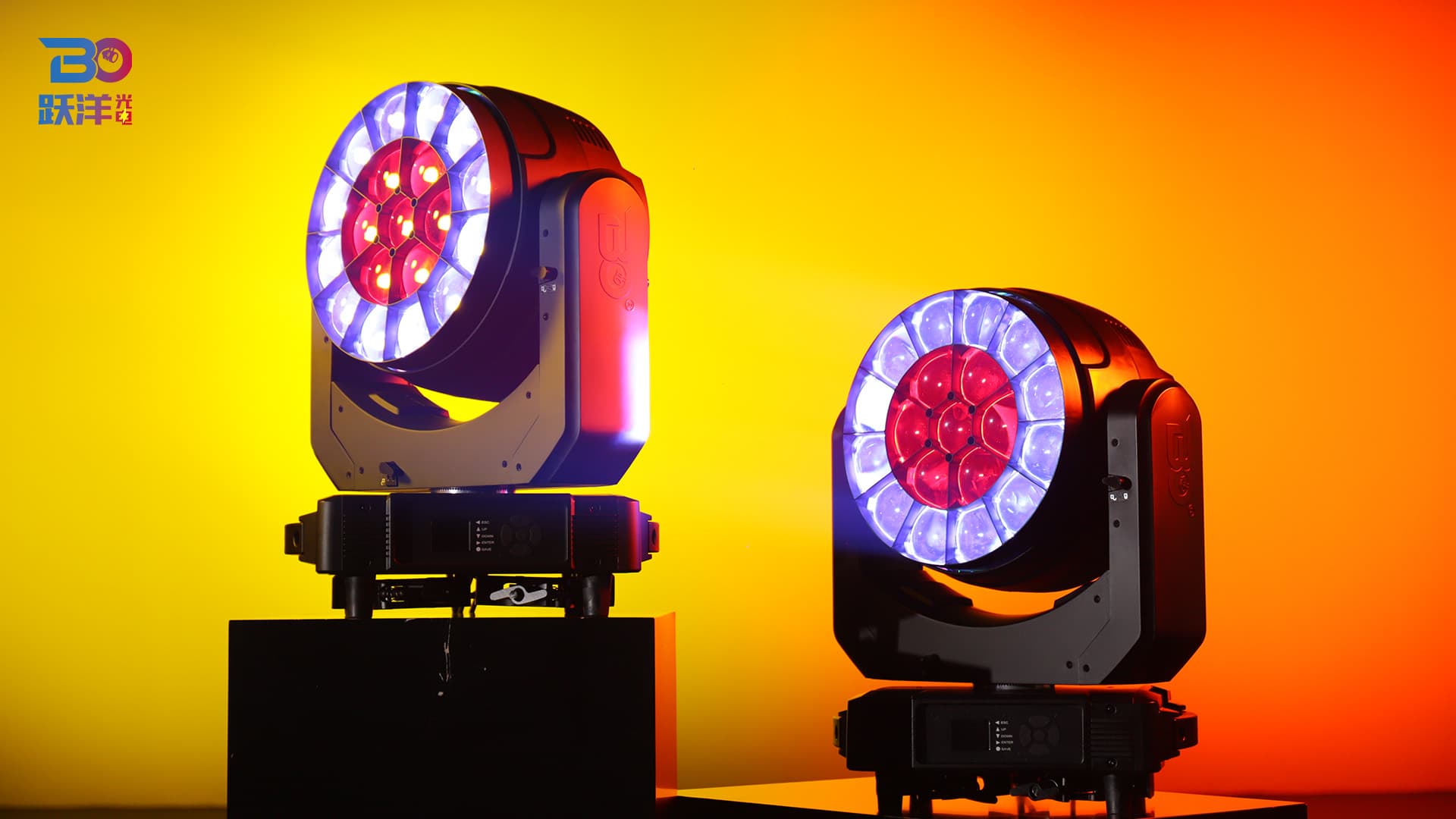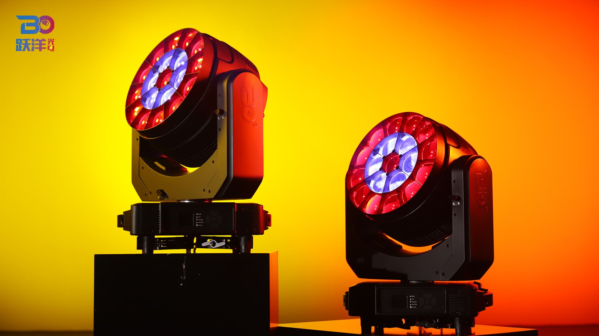 Features: Full range dimming, 65536 dimming levels; 4 dimming curves to choose. Fast strobe 1~25Hz; LEDs are divided into 3 circles for control; Integrating WASH and beam effect; Preset multiple color macro function; Preset multiple effect macro function; CTO: 2200K--10000K selection