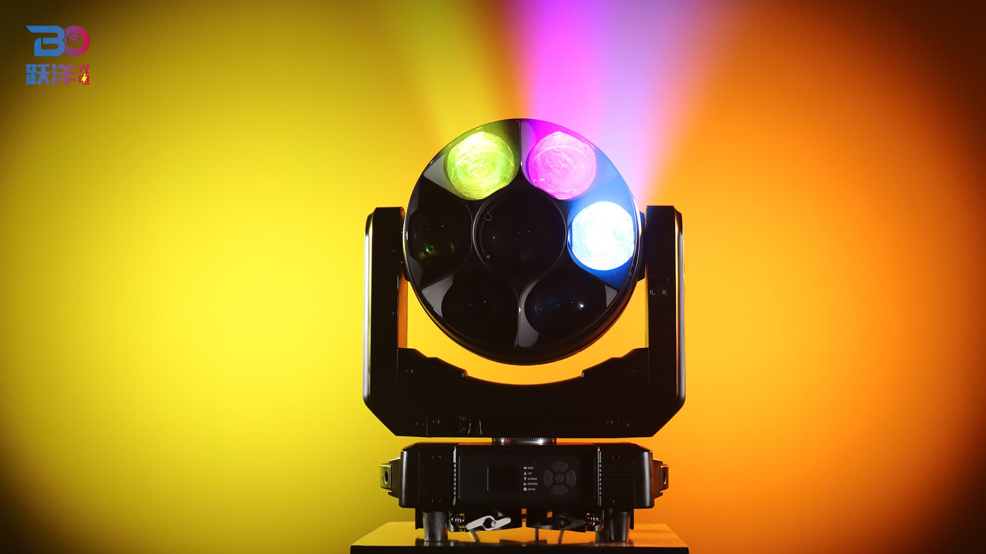 200W lamp beads can be rotated; multiple effects (washing, pixel control, strobe), macro functions