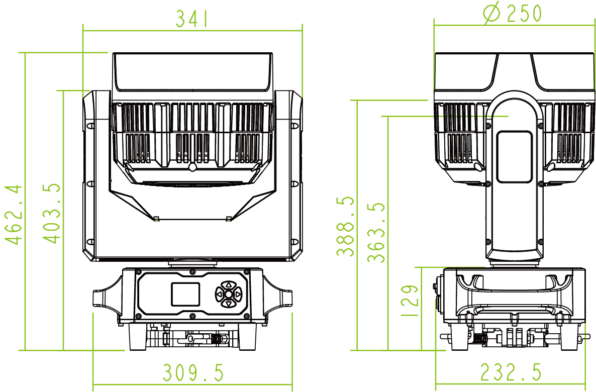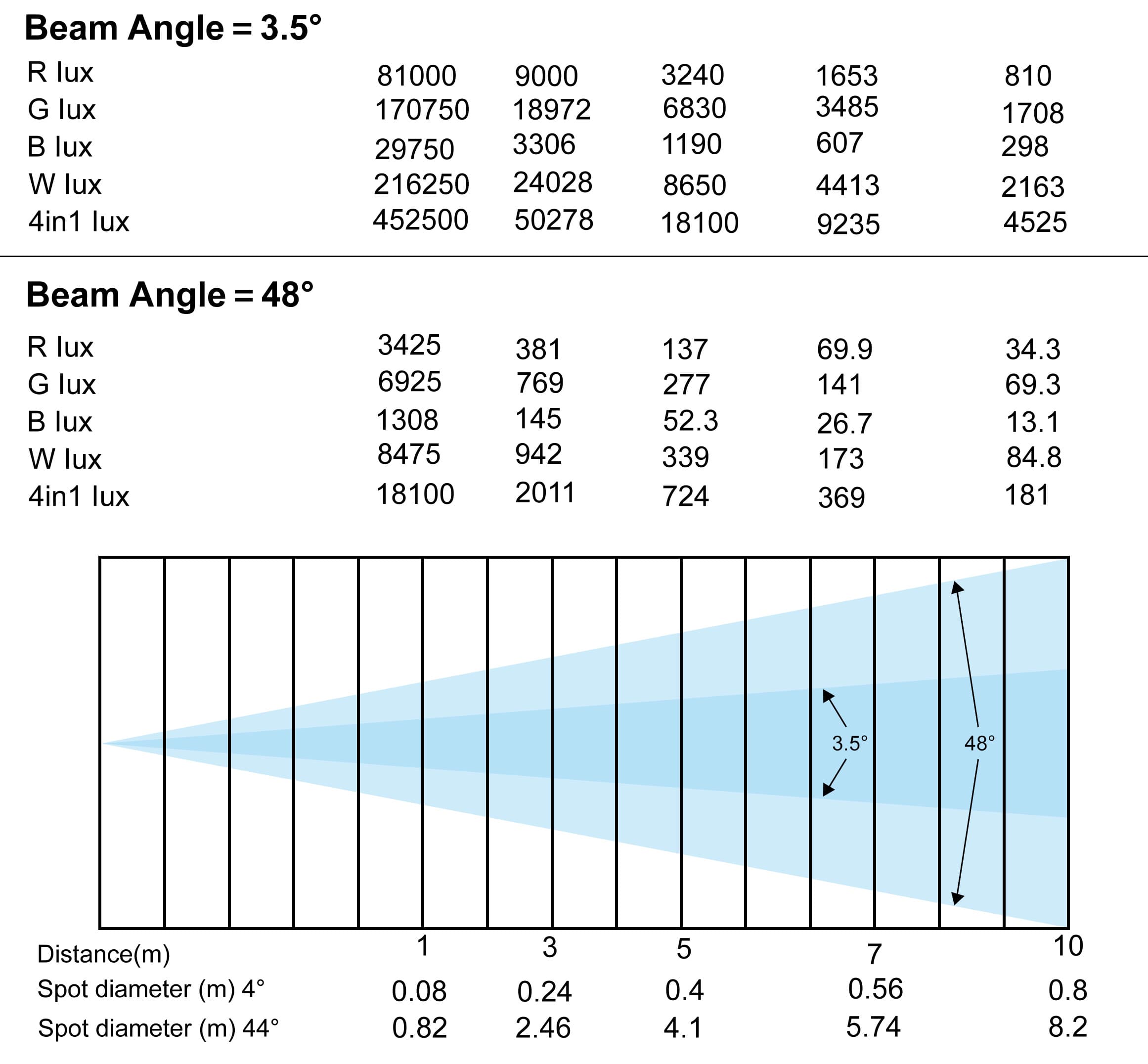 Features: Circle control effect, large zoom range, wide wash area, RGBW color mixing system, full light range dimming; smooth and uniform, low noise and high efficiency fan cooling system; fast strobe 1~25Hz; preset multiple color macro functions; preset multiple effect macro functions