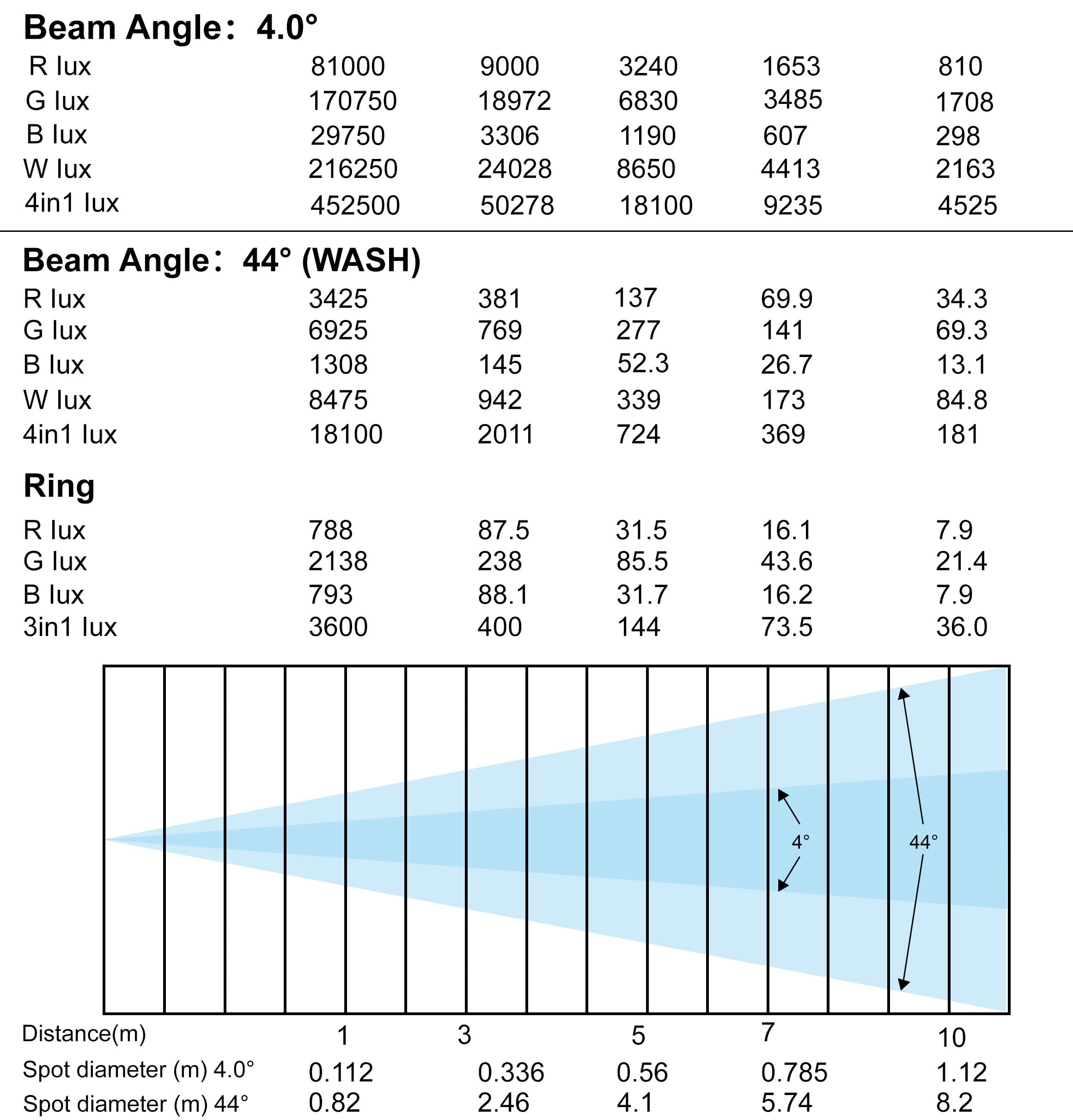 Beam Angle: 4°-44°