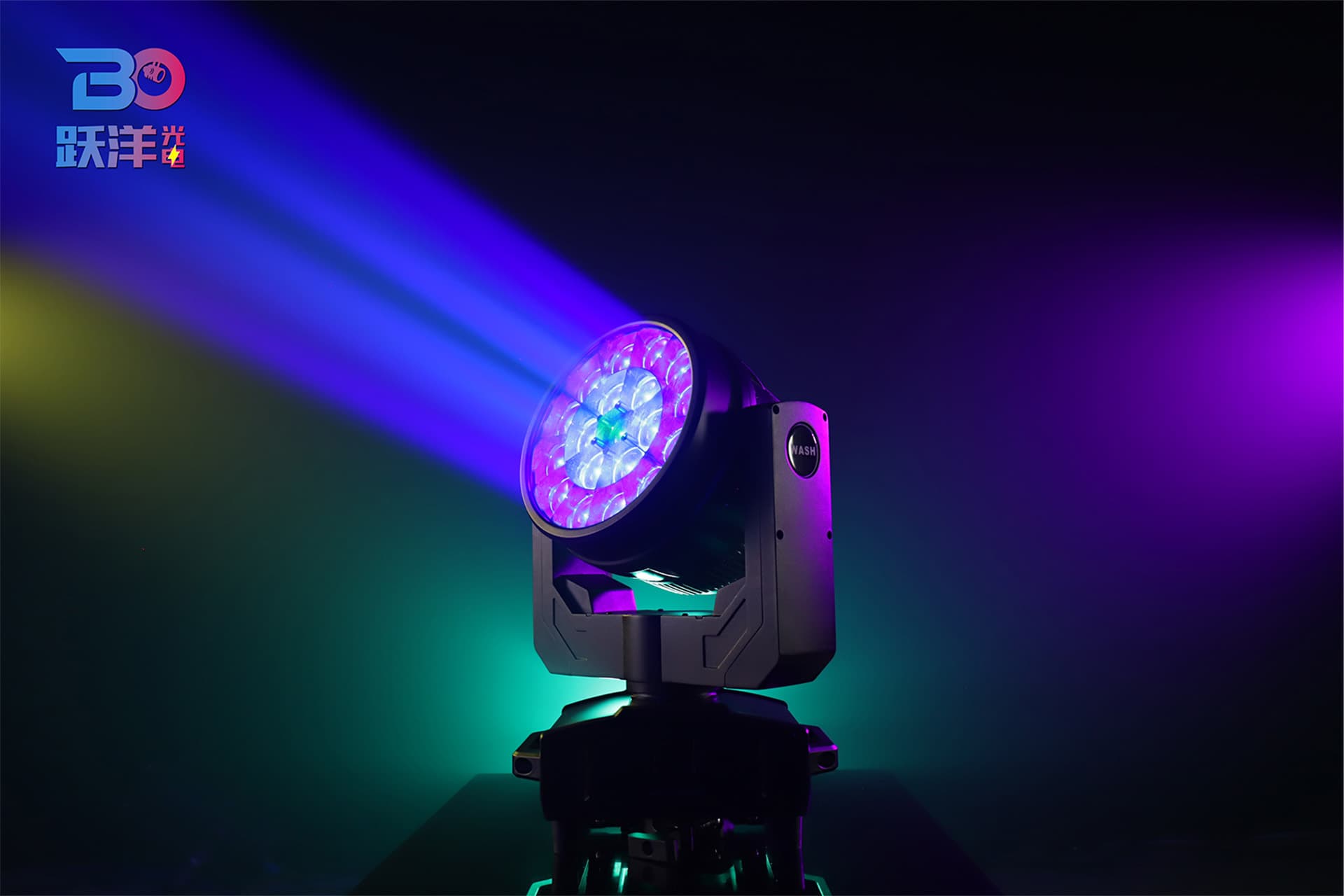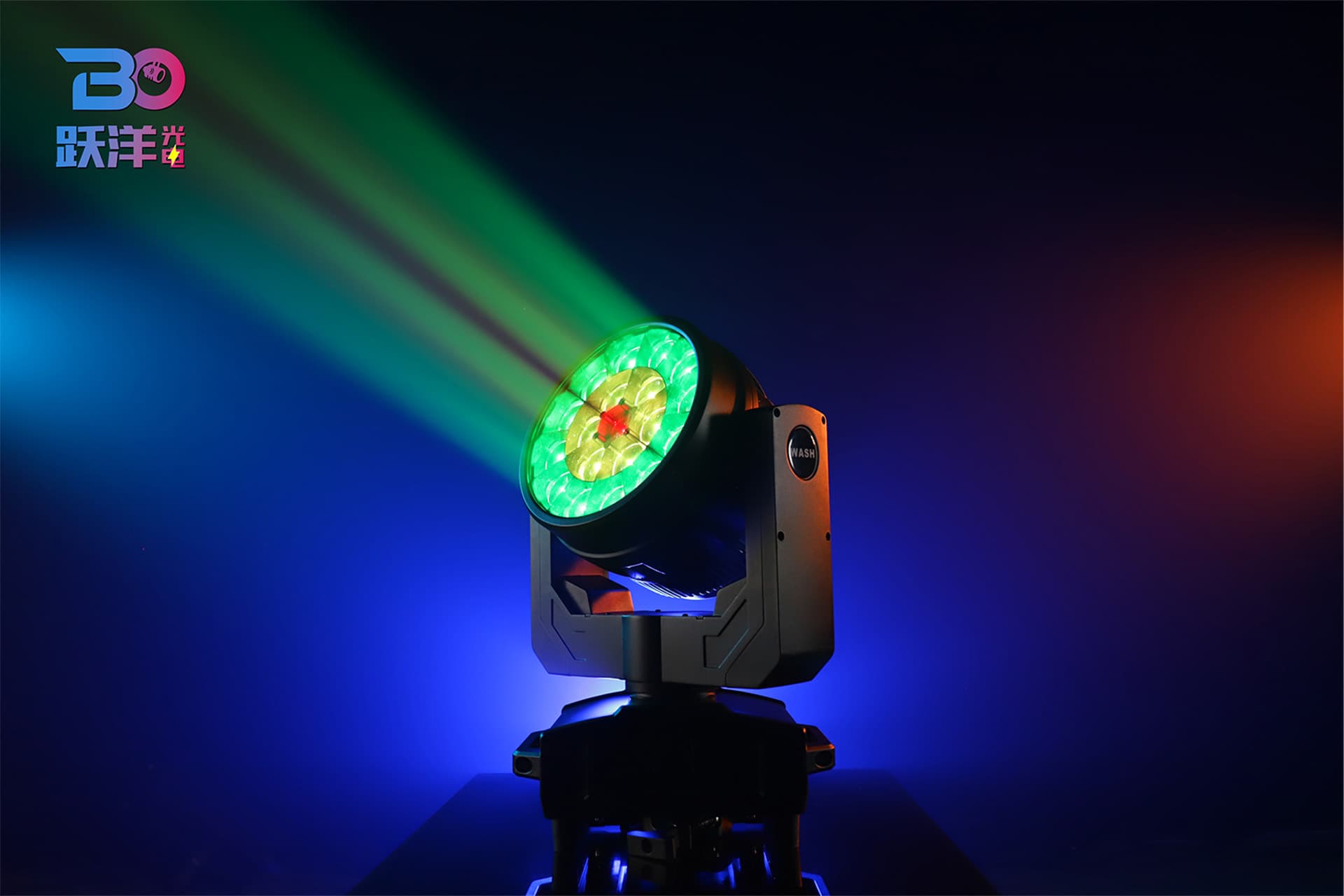 Features: Circle control effect, large zoom range, wide wash area, RGBW color mixing system, full light range dimming; smooth and uniform, low noise and high efficiency fan cooling system; fast strobe 1~25Hz; preset multiple color macro functions; preset multiple effect macro functions