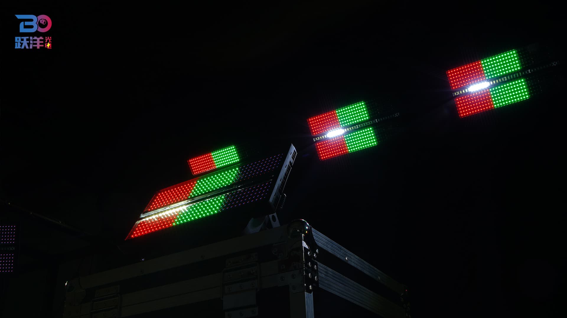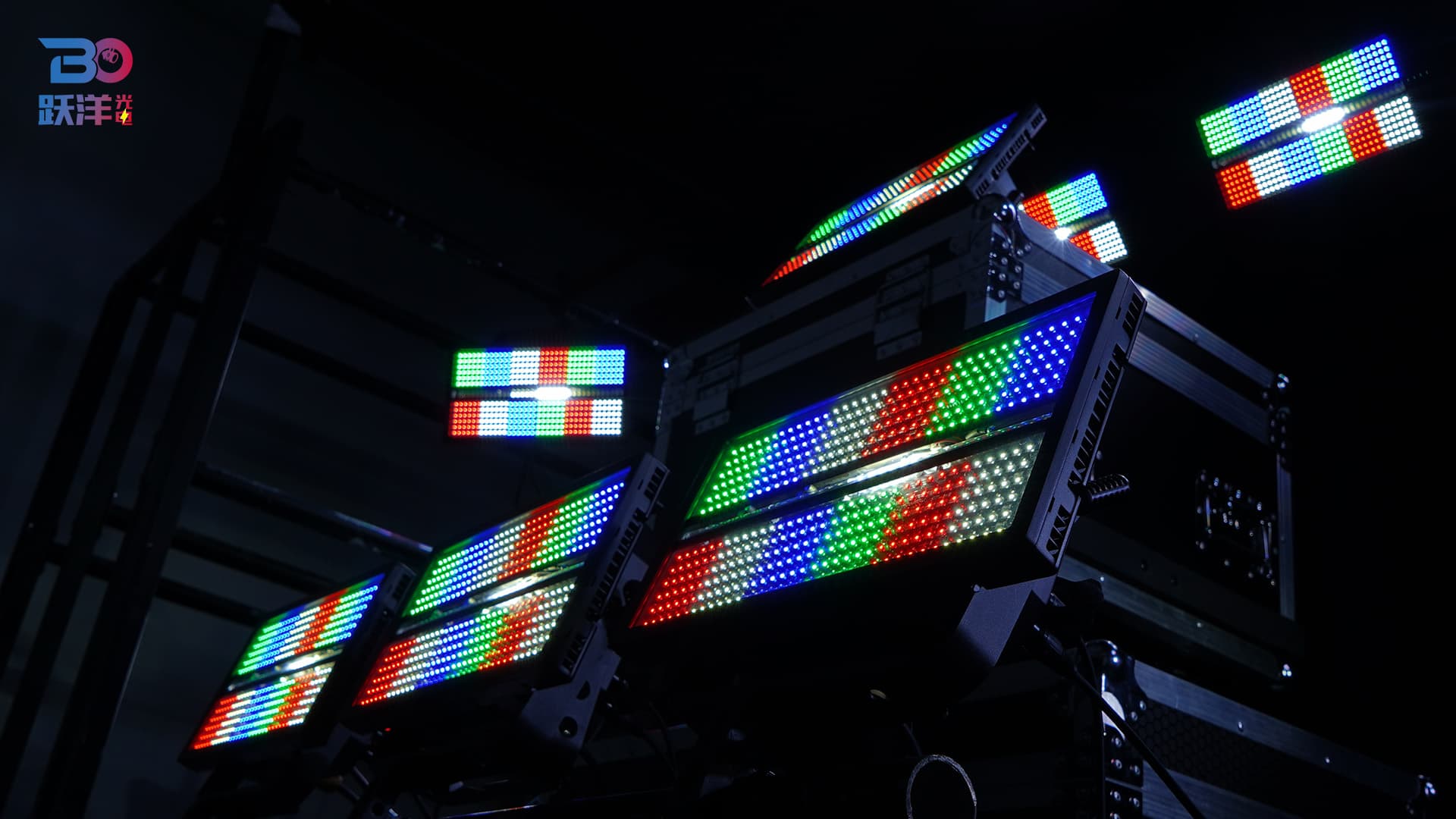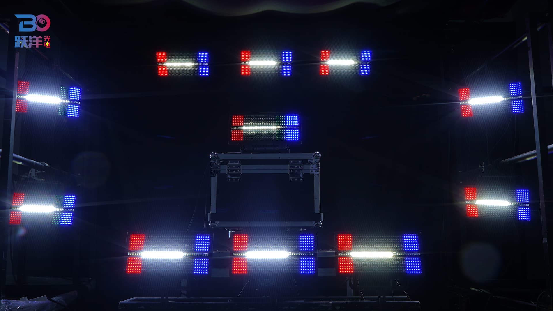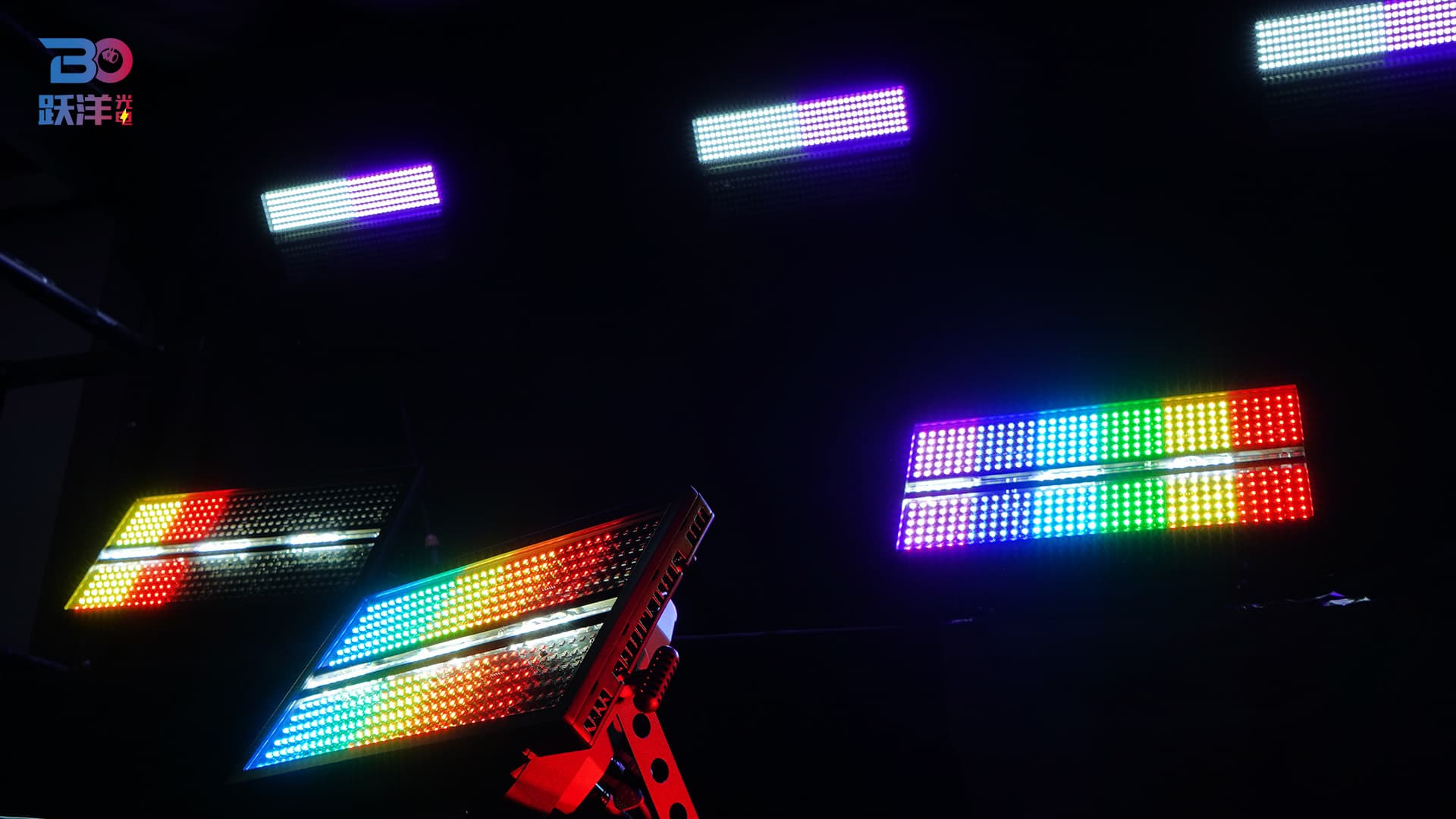 Features: Full-spectrum dimming with 16-bit precision; rapid strobe from 1 to 25Hz; Both sides of 432 x 1W LEDs divided into 12 segments, middle of 36 LEDs divided into 6 segments; multiple preset color macro functions; multiple preset effect macro functions (color wash, segment control, strobe).