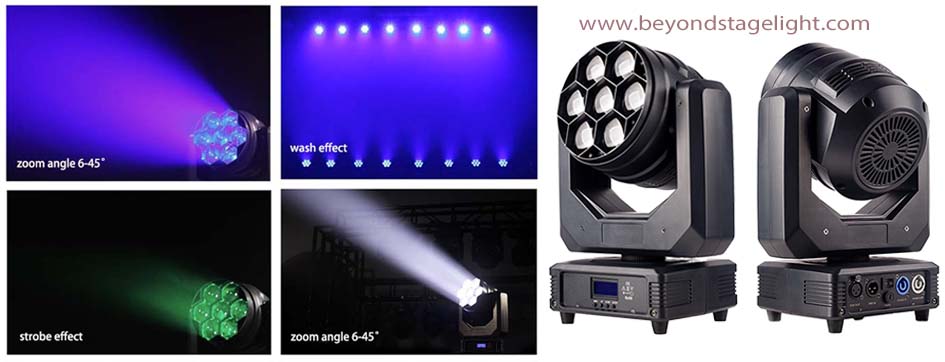 According to the research of stage lighting market, most wash moving heads use RGBW 4in1 Led as the light source, and the power of the lamp beads is 15 watts, 20 watts, 40 watts, and 60 watts. The number of lenses is 6, 7, 12, 19, 24, and 37.